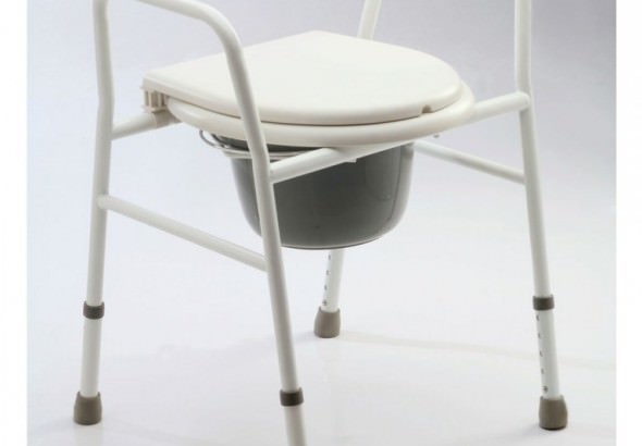 Elevador de Inodoro. 4566-6441/WhatsApp 15-4022-8664.Entrega SIN CARGO en Capital Federal. Estructura de acero, con apoyabrazos, asiento y tapa rebatibles y desmontables. Regulable en altura. Incluye bacinilla plástica con tapa y manija. - Ancho de asiento: 38cm. - Ancho entre apoyabrazos: 49cm. - Altura de asiento: 50-60cm. - Ancho total: 55cm. - Profundidad de asiento: 40cm. - Espacio libre bajo asiento: 42-52cm. - Peso máximo del usuario: 100Kg.